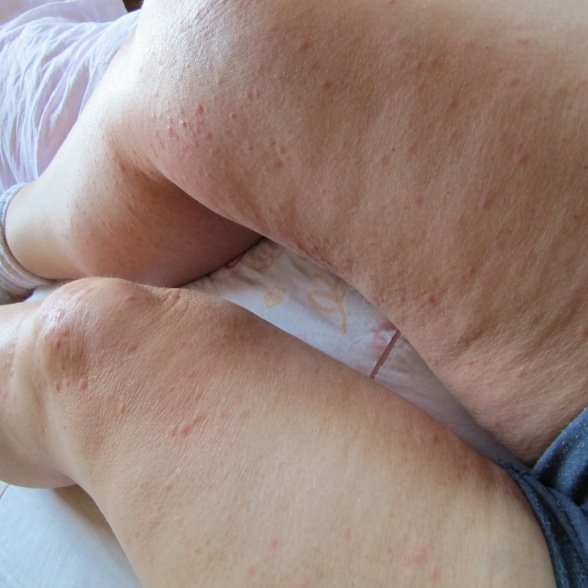 Gesunden Beine links und die oedematös-kranken-Beine des Patienten rechts in der Wohnung (wunderschönes historisches Bauernhaus, ca 200 Jahre alt), jedesmal wenn der Patient nicht in der Wohnung war, wurde es ganz langsam besser.